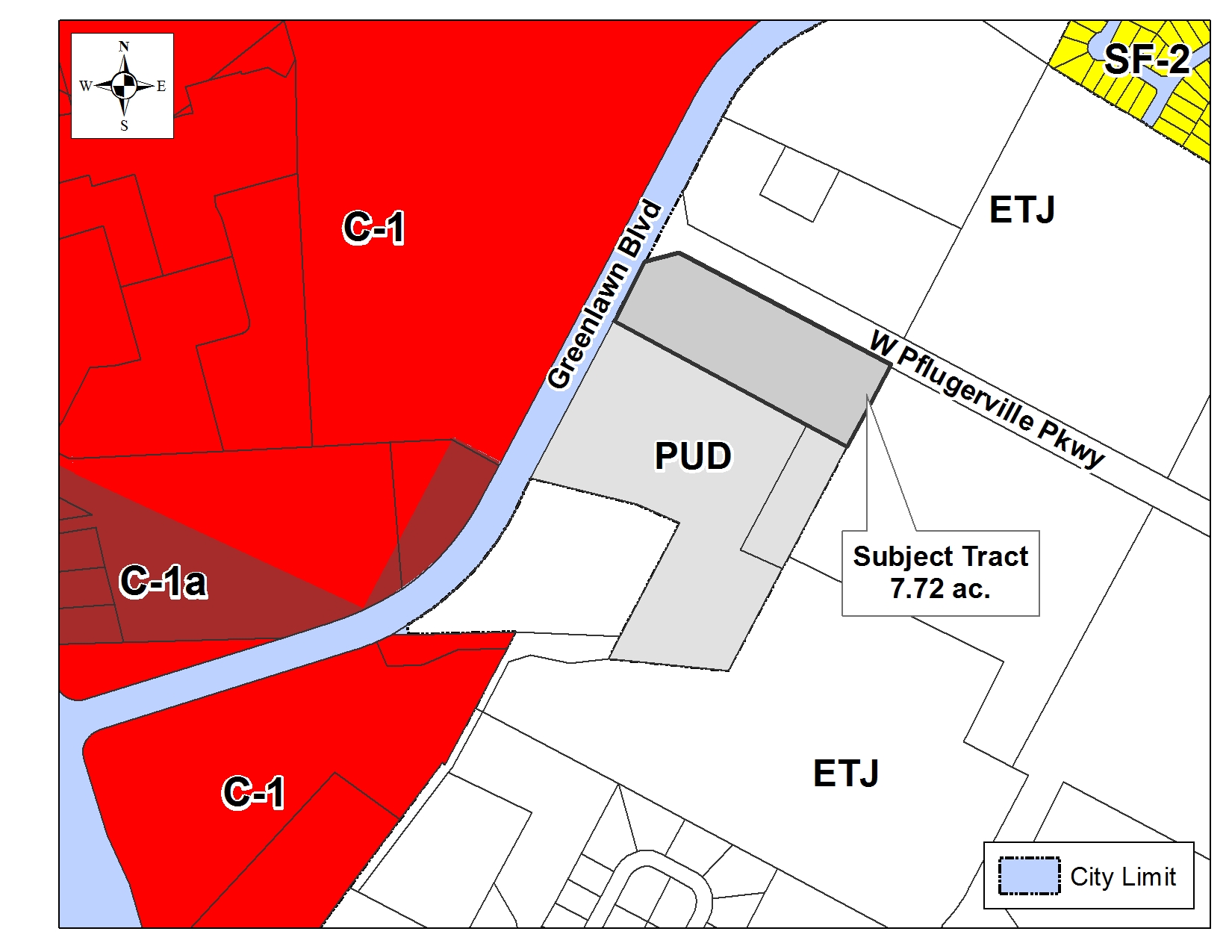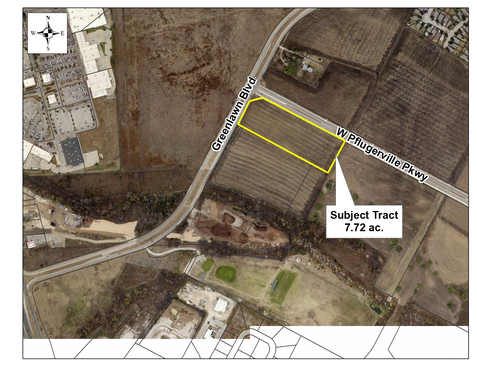Consider public testimony regarding and an ordinance approving original zoning to the MF-2 (Multi-family medium density) zoning district for 7.72 acres located at the southwest corner of the intersection of Greenlawn Blvd. and W. Pflugerville Parkway. (First Reading)*